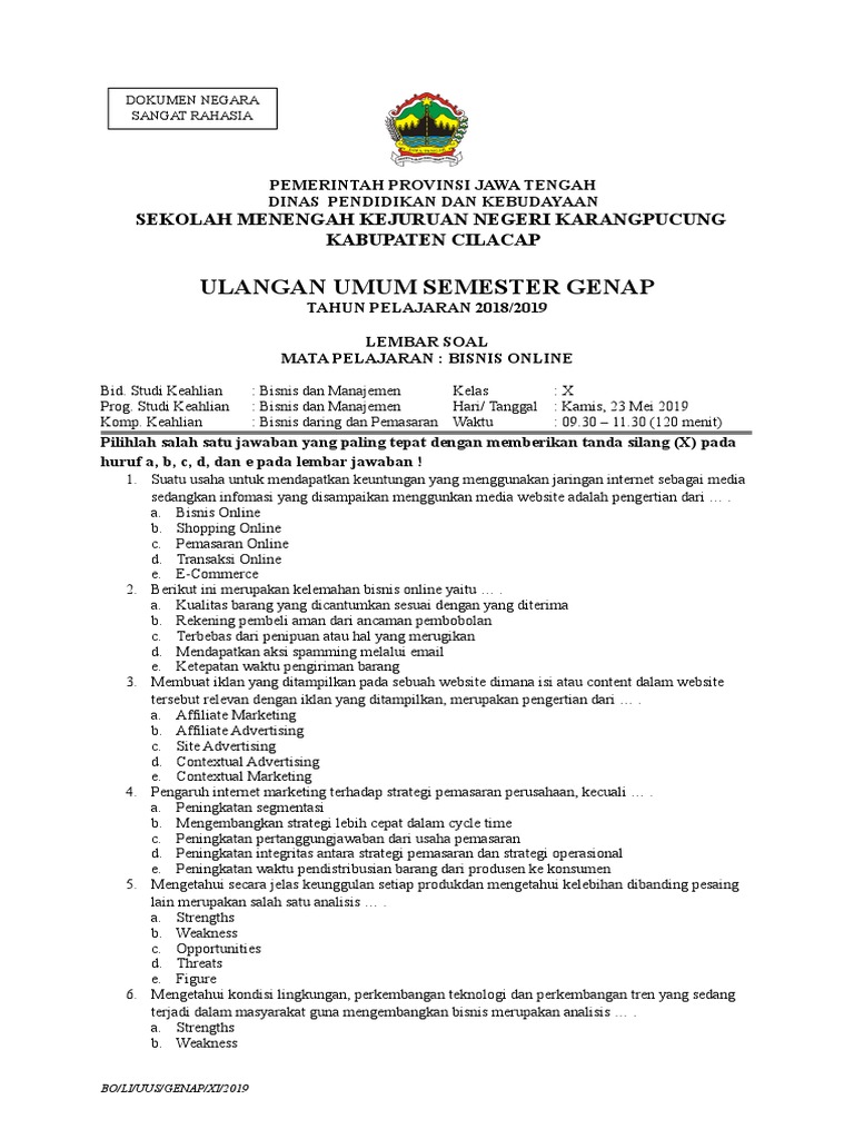 Contoh soal essay bisnis online, application letter for forklift operator, essay on plagiarism in college, essay on gun control in canada. Soal bisnis online kelas 12 semester 2. Soal pemrograman web dan perangkat bergerak kelas. Demikian contoh latihan soal smk bisnis daring dan pemasaran yaitu soal bisnis online (pemasaran online) dan kunci jawaban kurikulum 2013 revisi. Jelaskan perbedaan antara pemasaran online dengan pemasaran offline berdasarkan indikator usaha meraih target konsumen !